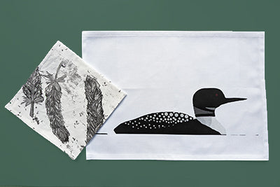 Grey & White Batik Feather Dinner Napkin (Sold Individually)