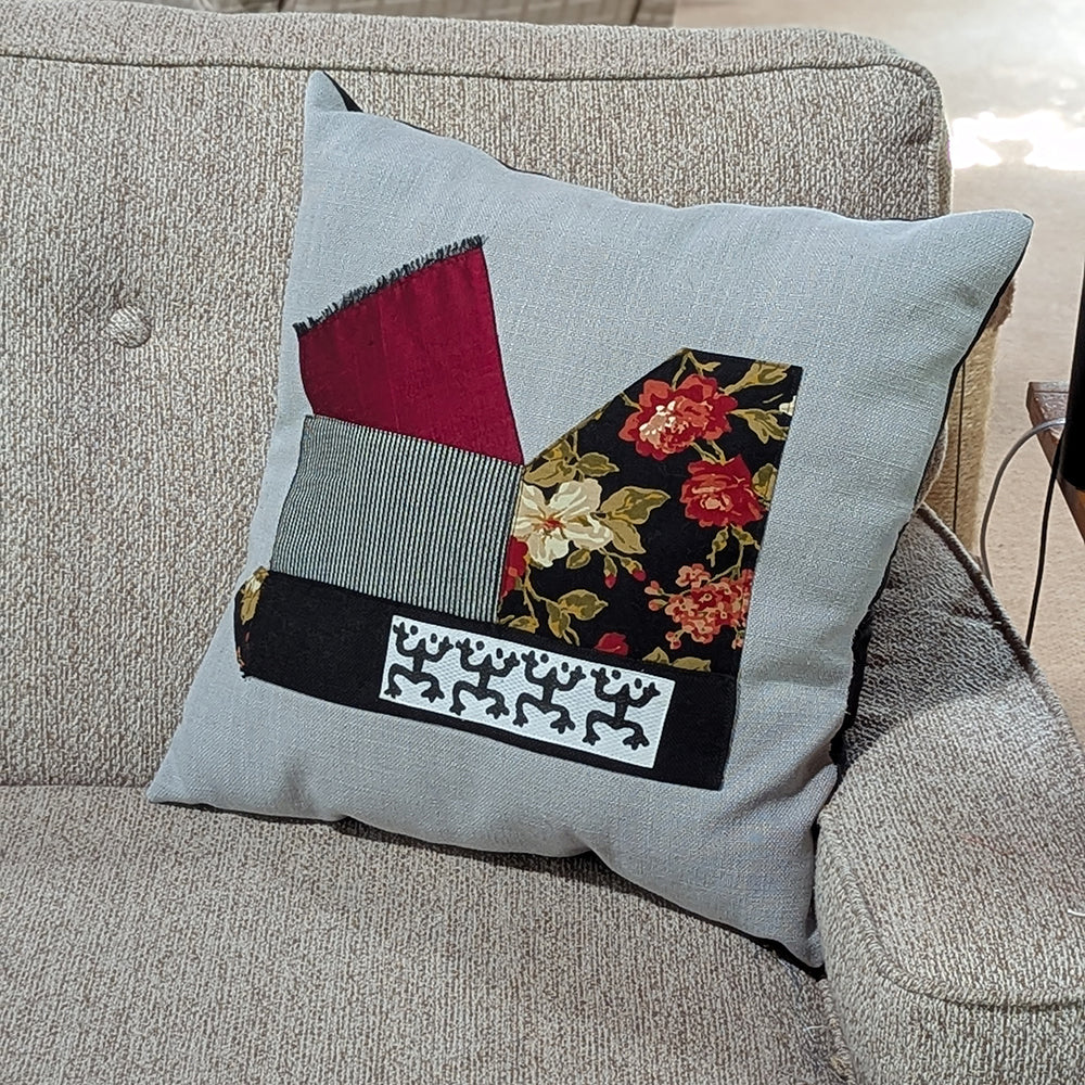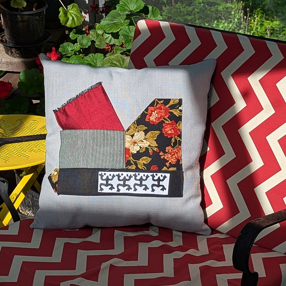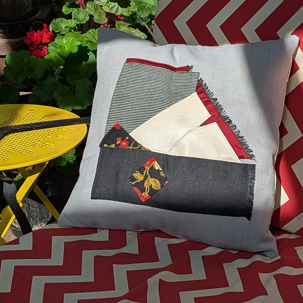 A large accent pillows for any room, created from my appliqued fabric pieces in silk, cotton, faux leather and even custom inkjet printing.