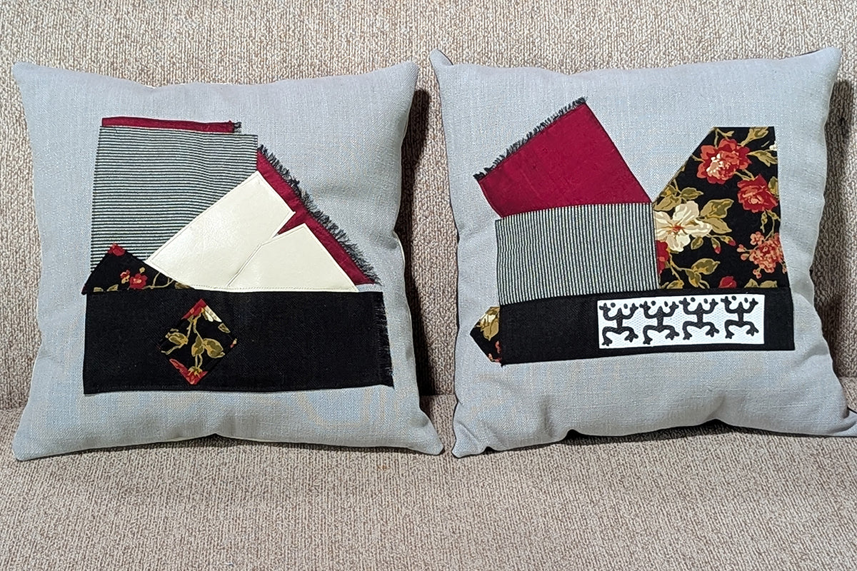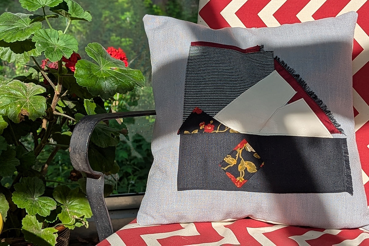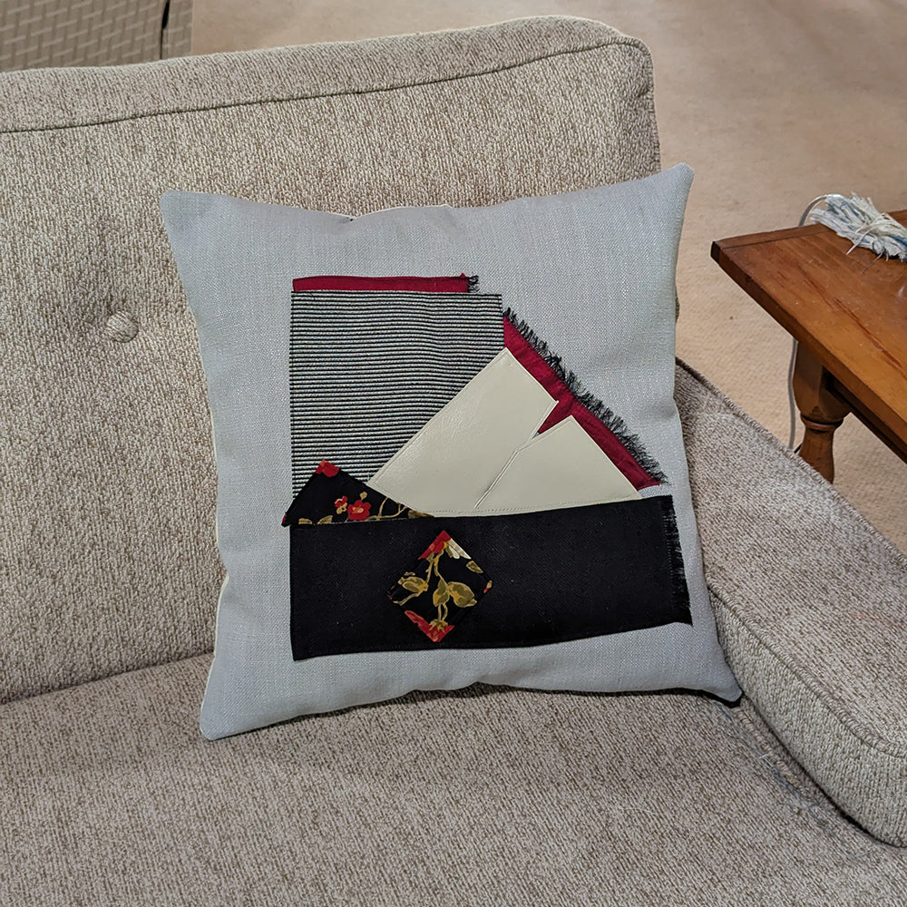 A large accent pillows for any room, created from my appliqued fabric pieces in silk, cotton, faux leather and even custom inkjet printing.