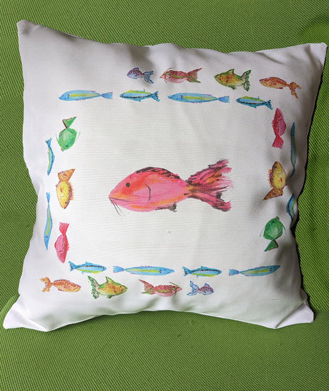 A large accent pillow for any room, but especially appropriate for a sunny porch or deck, in a summer house or cabin, here is one of our newest, exclusive, watercolor fabric design. Approximately 17" x 17".