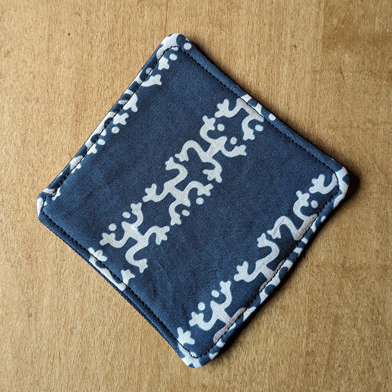 Repeating Taino Coquies (Native American Frog) symbols are the basis for these coasters! Artisan-made from 100% cotton fabric backed with coordinating cotton.