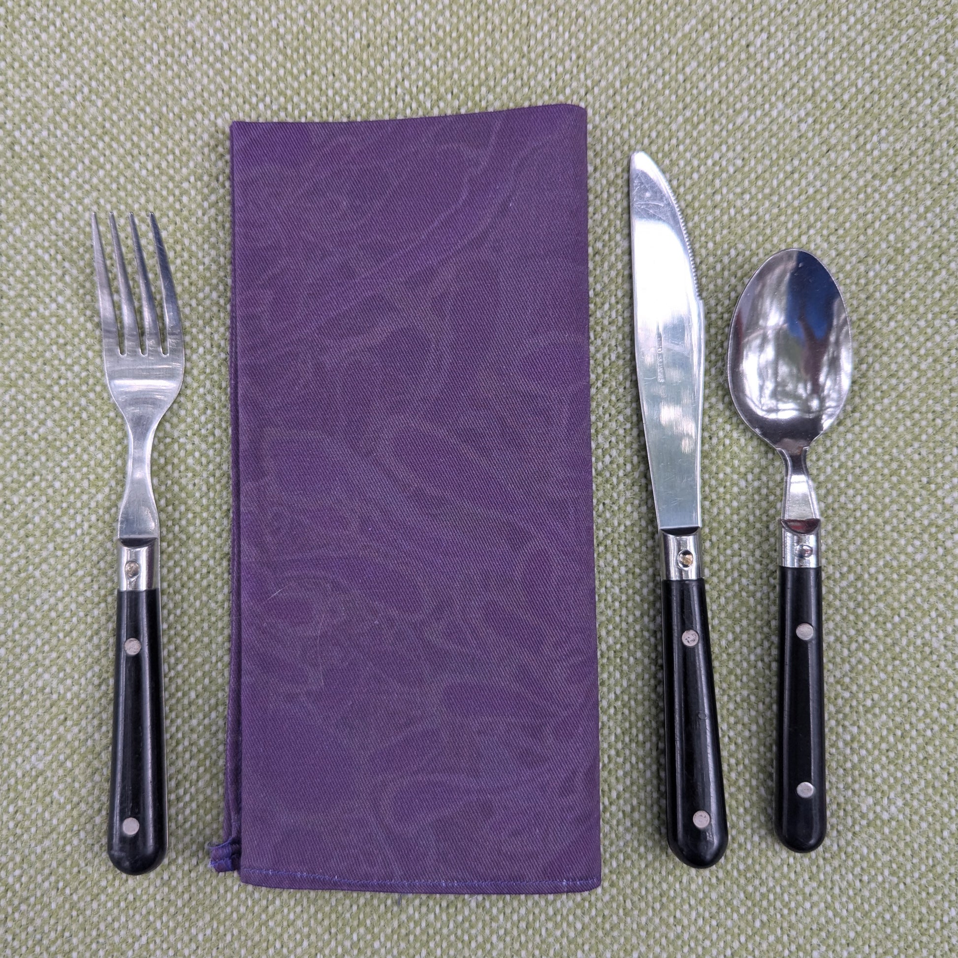 These napkins are made from a Jetsy photograph of fancy chrysanthemums. The original is a vibrant confetti of purples and greens, and there are two solid color options (same flower patterns) in green and purple.