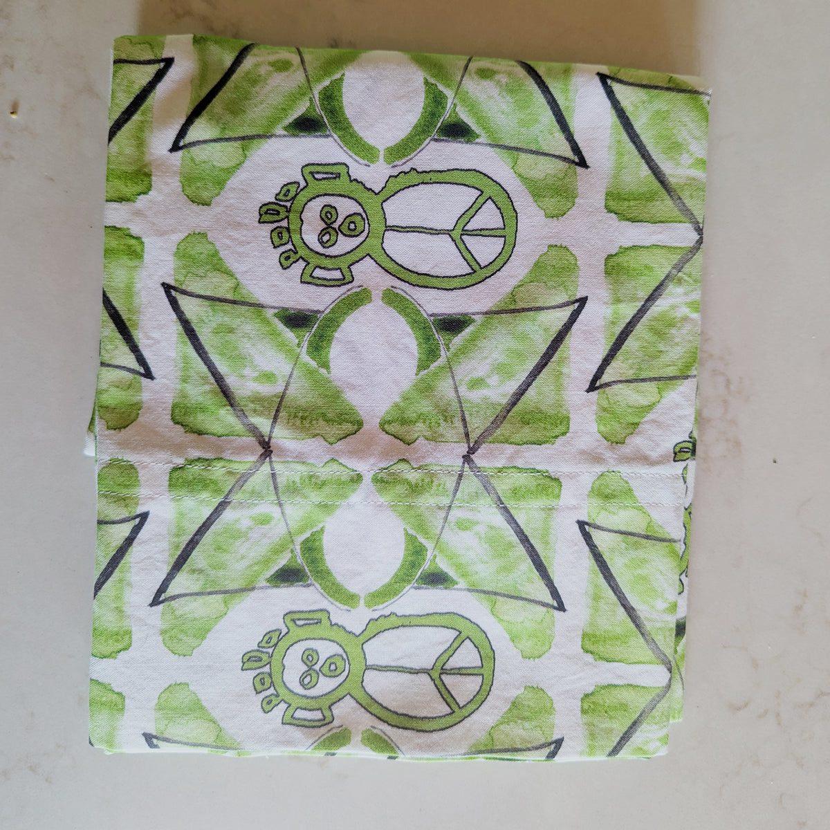 Pillowcases are standard size. Bordered top sheets can be special ordered.