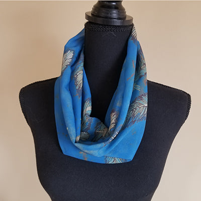 Chiffon Scarf - Blue with Feathers
