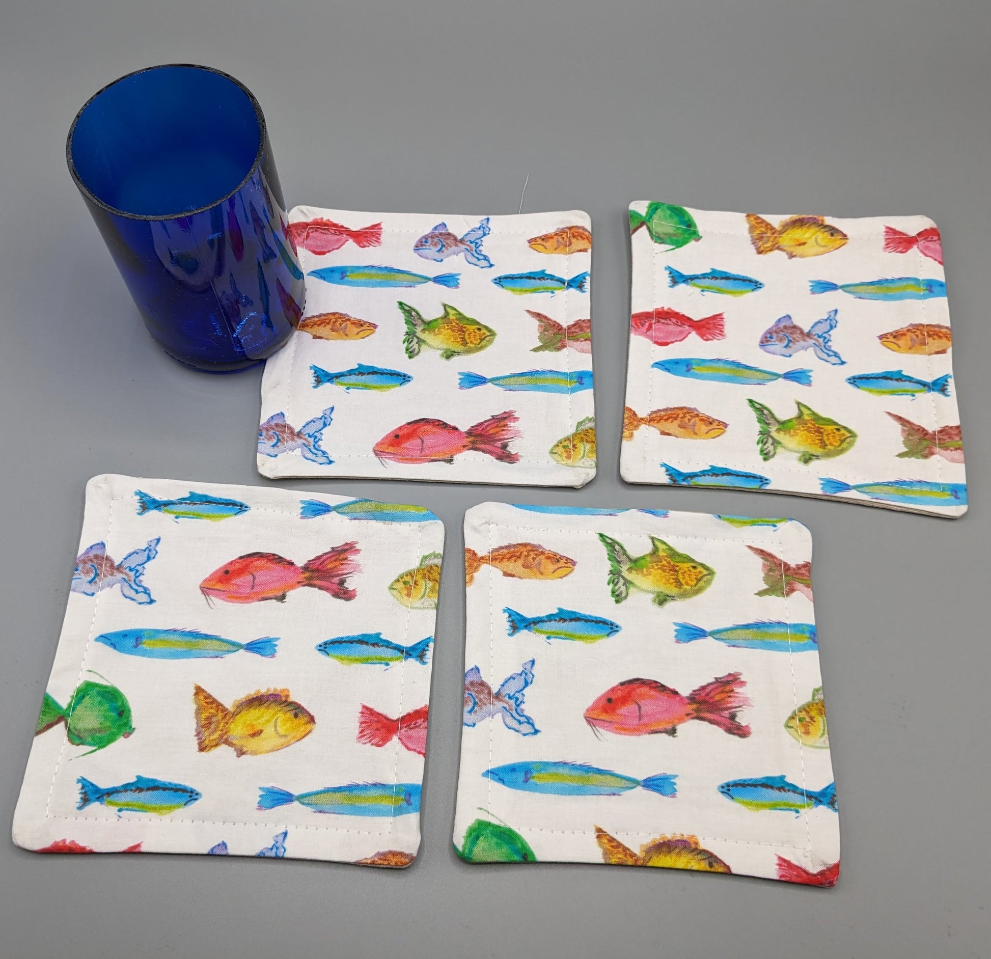 Our exclusive watercolor fishes design is the basis for these coasters.